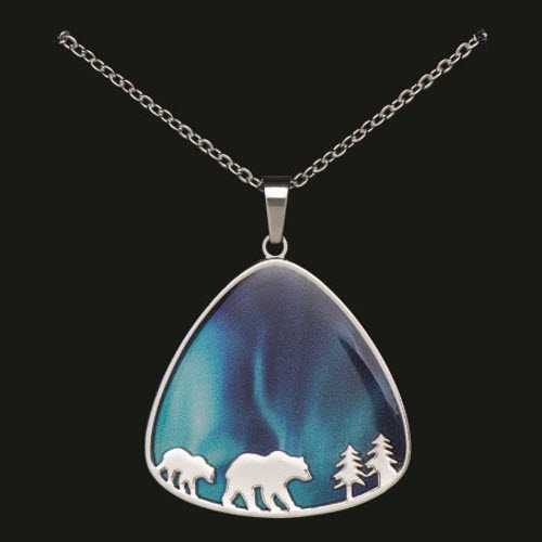 The bold and vivid colors of the northern lights come alive in this an eye-catching collection. Northern Lights jewelry comes competitively priced and attractively gift boxed. Choose from necklaces and earrings featuring a variety of shimmering silhouettes with vibrant aurora-filled centers—wearable art inspired by nature and wildlife. Each piece will bring back memories of your travels every time it’s worn.